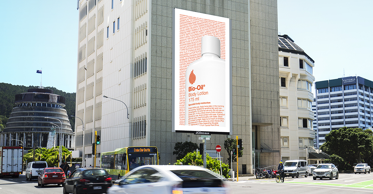 Bio-Oil, from Union Swiss, used its distinctive packaging in their campaign across the JCDecaux network.