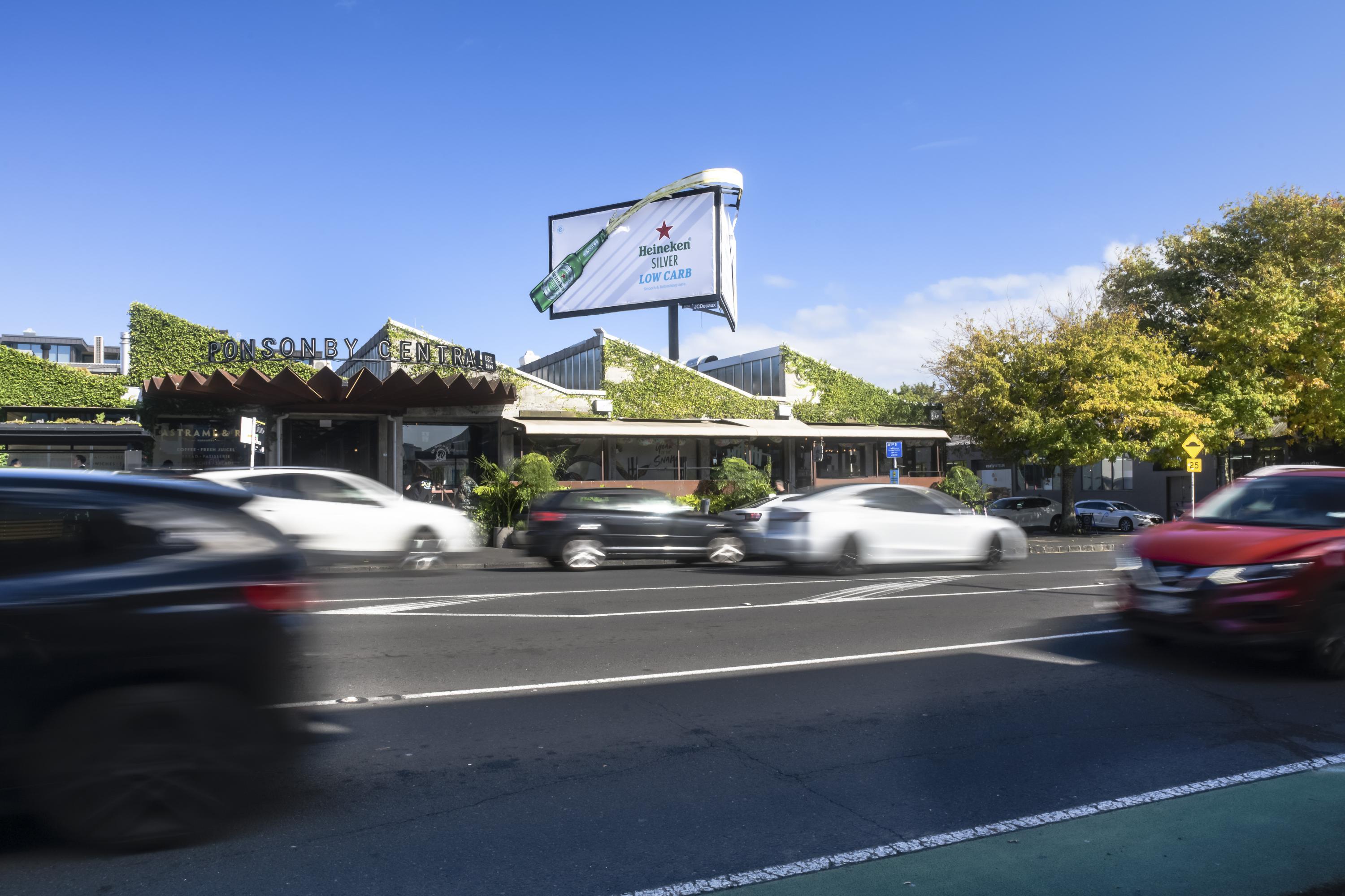 JCDecaux's special build was been created for Heineken, on our premium sites at Ponsonby Central. Working closely with dentsu Aotearoaand Saatchi & Saatchi NZ this huge execution stood out in the heart of Auckland’s iconic hospitality & nightlife area and brought a unique twist to traditional Out-of-Home.